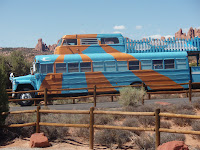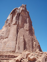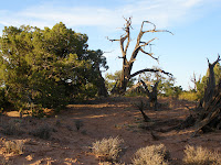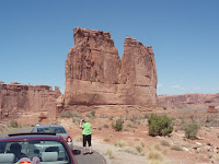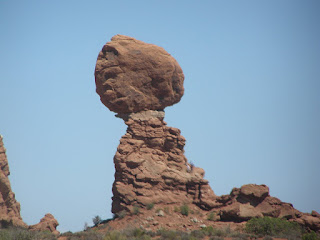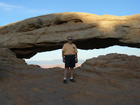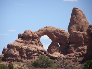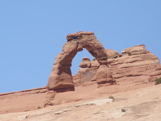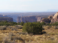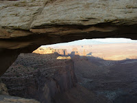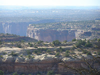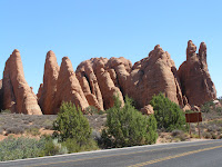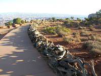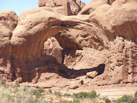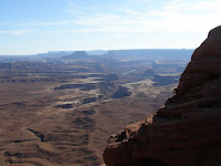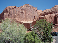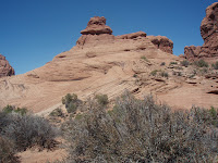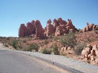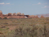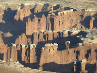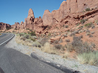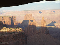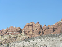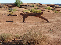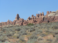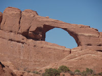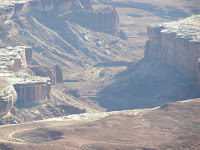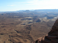 Drove east to two national parks today, Arches and Canyonlands. Another very beautiful bright sunny day. If you suffer SAD like I do, this is a place to be. The relative flatness of this area enables one to see vehicles driving on roads 5 miles away. Sure can't do that in New York state! The roads are quite straight, the scenery little rolling mounds, flatlands, and an occasional cutout where a stream must run when there is rain(?) or snow melt, replicas of river canyons on a small version, maybe 6 feet deep.And, of course, the wonderful rock formations.