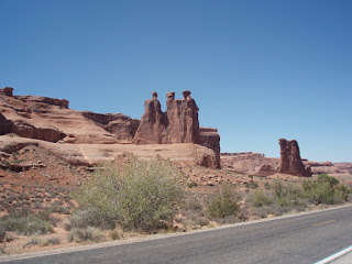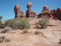 In Arches National Park, we saw, of course, arches, rock formations, an old ranch, twisted trees that I loved, and flowers. Some of the rock formations had names, such as the three gossips...