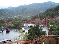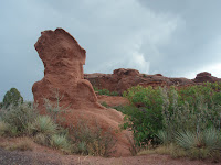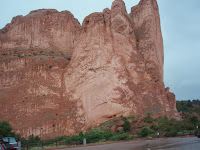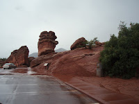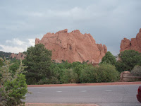 We woke up to clouds and light rain. First real rain since Indiana. We drove around the Garden of the Gods, had lunch during a thunderstorm and rode some more. Pike's Peak and the entire back mountain range was hidden from view by the clouds/fog. Slowly the sky cleared and the mountains were visible again. This is high plains area, we left the high desert behind with the sun and the warmth.