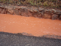 The rain storm made the rocks look even more red. The water running down the sides of the roads was also very rust colored.