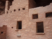 Farther down the road was the Manitou Cliff Dwellings site. Anasazi ("The Ancient Ones" or "The Ancestral Puebloans") lived here from 1100 - 1300 A.D. A newer structure had been built and occupied by the Pueblo Indians of today until 1984.